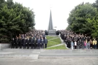 Azərbaycan Respublikasının Milli Qəhrəmanı Yavər Şahbazovun büstü ziyarət olunub, Xaçmazdan olan bütün şəhidlərin xatirə lövhələri önünə tər qərənfillər düzülüb.