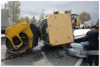 Gəncədə asfalt örtüyü döşəyən iri tonnajlı avtomobil "Opel" markalı avtomobilin üzərinə aşıb.